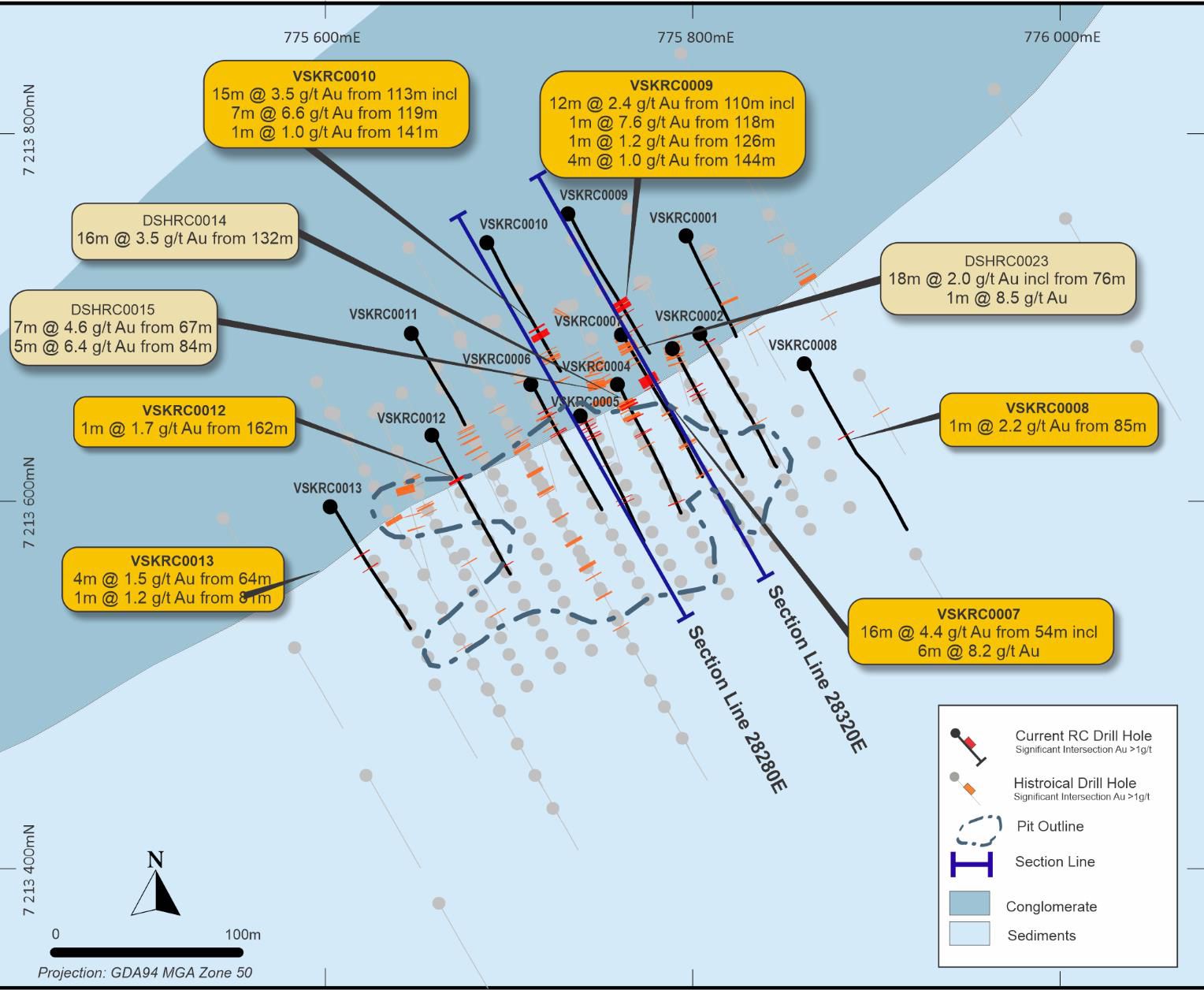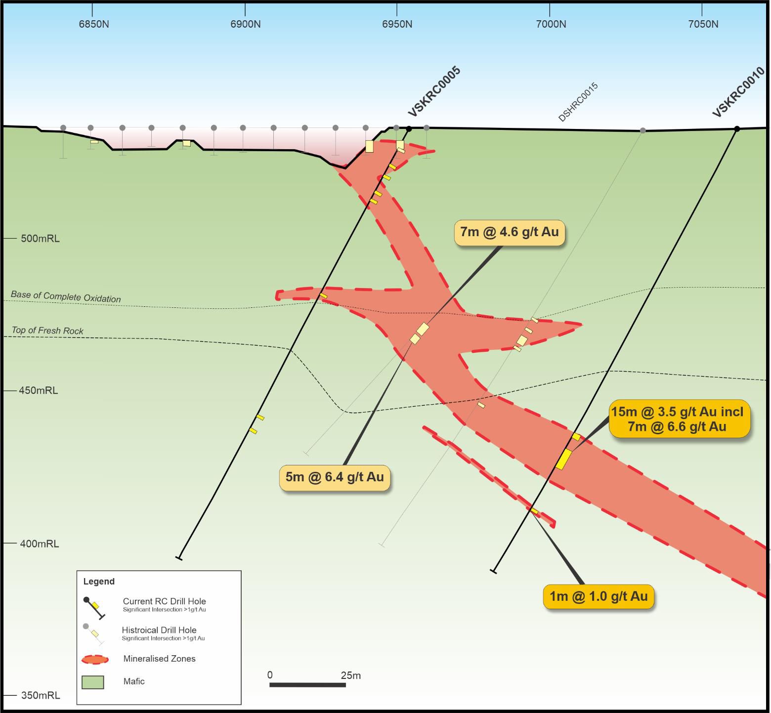 o 15m at 3.5 g/t Au from 113m in VSKRC0010 incl. 7m at 6.6 g/t Au from 119m