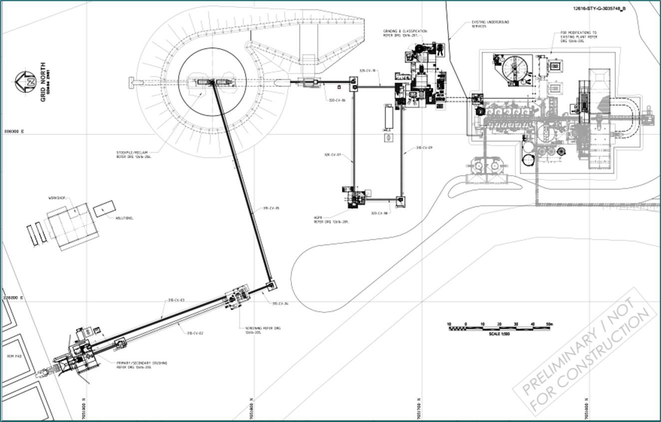 - Processing of sulphide ore primarily from underground mining initially through the 750ktpa Stage 1 Sulphide flotation plant and ramping up to processing through a 1.5Mtpa Stage 2 Sulphide flotation plant.