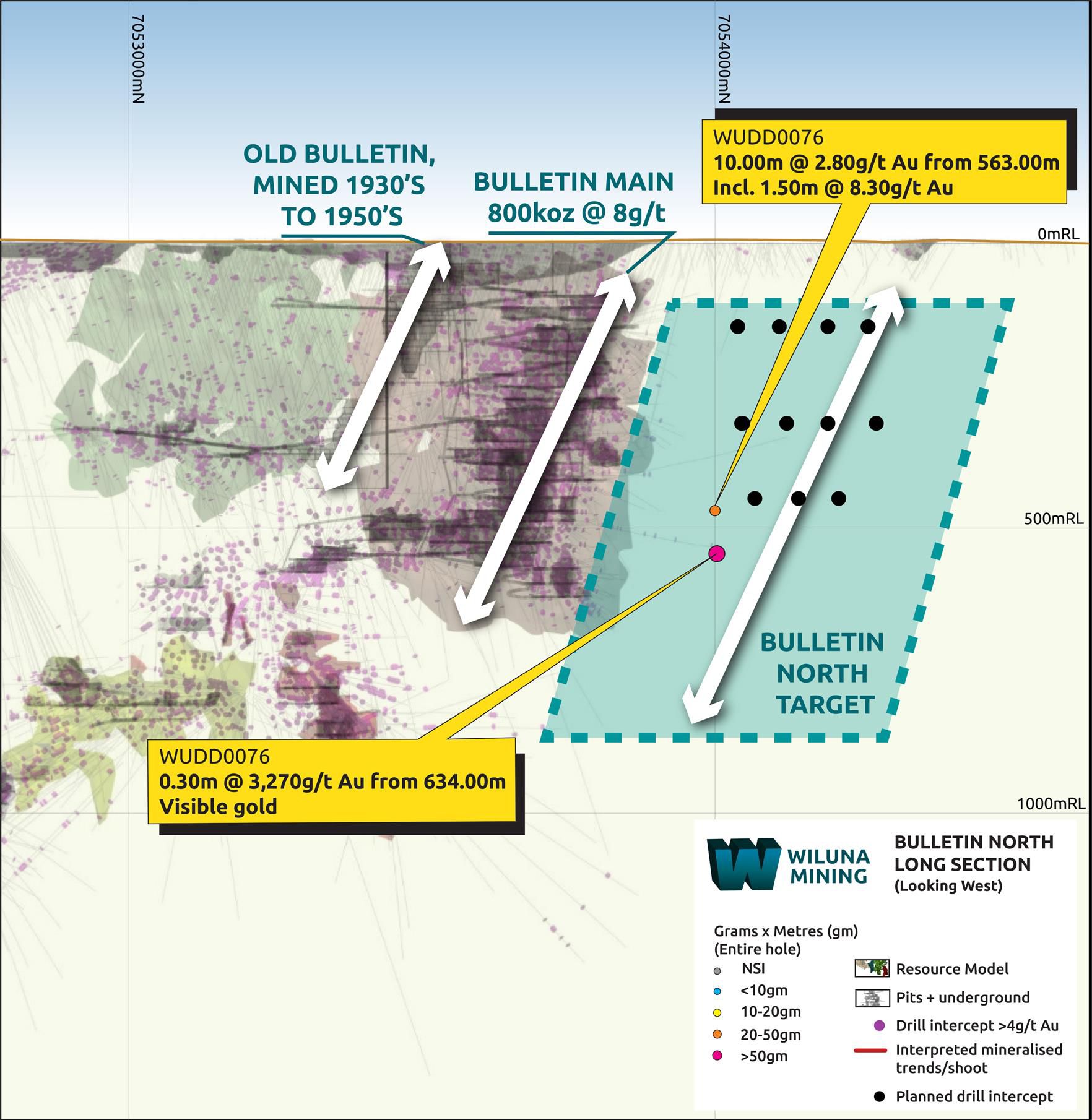 The Bulletin North target is one of nine large-scale sulphide shoot targets to be tested as part of a 40,000m discovery program across the Wiluna mine site.