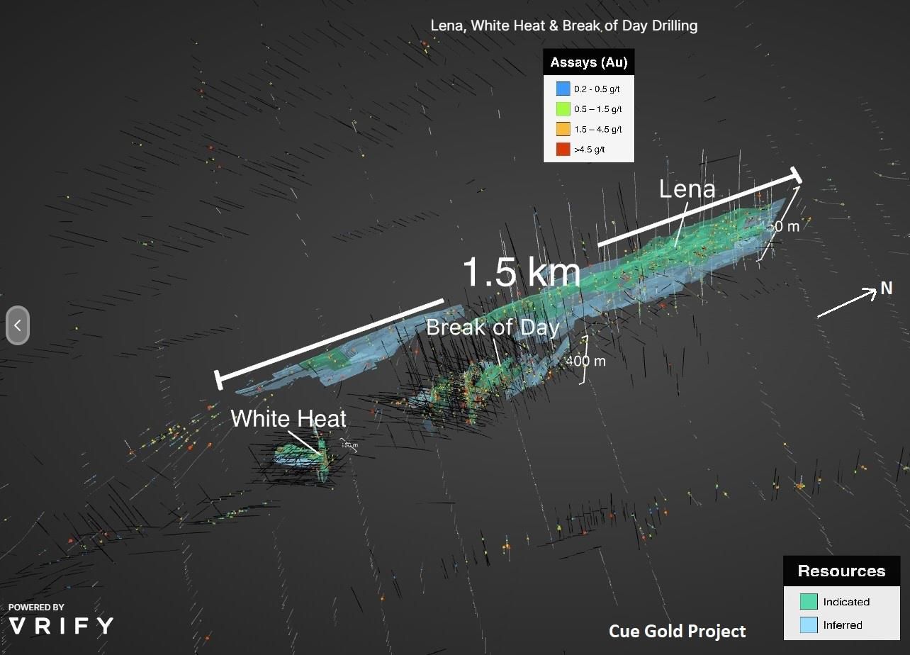 The 3D interactive model is hosted using the VRIFY Technology Platform and includes details of the Cue Gold Project location, topography, and resource block models. Exploration activities such as drilling, surface geochemistry, geophysical surveys and models of the Company's gold deposits are displayed in an intuitive 3D interface. Stage 1 PFS designs and planned infrastructure layout will be uploaded to the model as they become available.