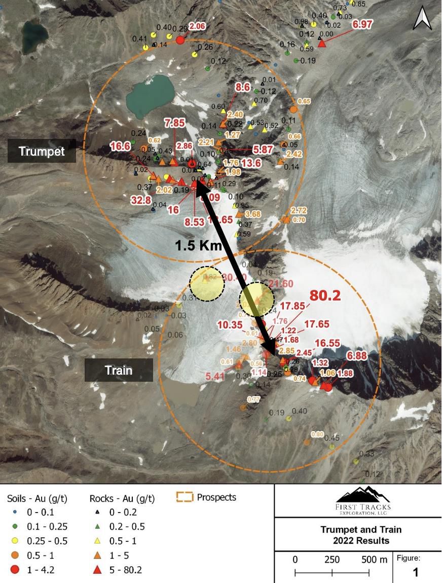 - 1.5 km link between Train and Trumpet - 30.4 g/t Au & 21.6 g/t Au