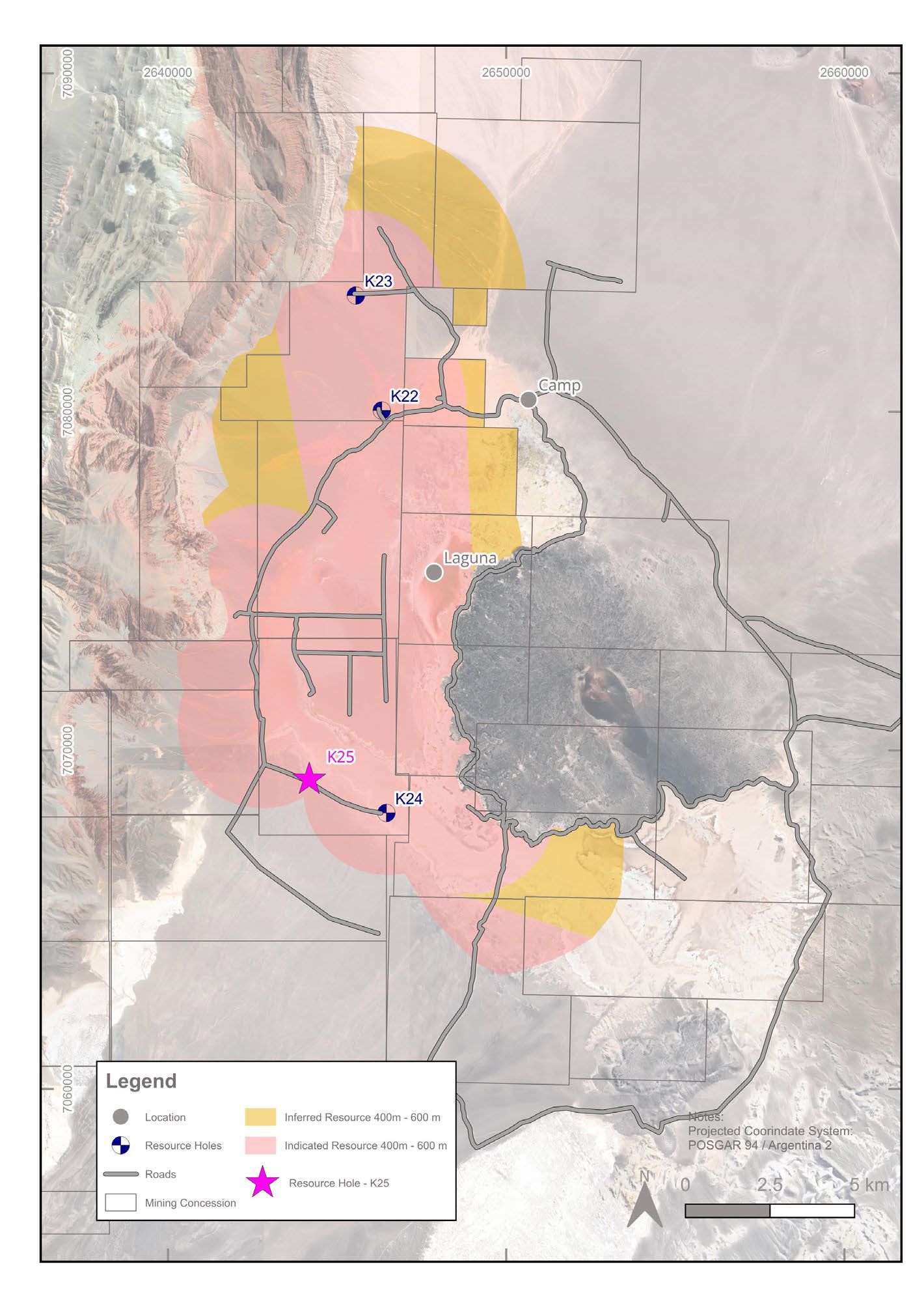 The K25D44 drillhole (Figure 1* and Figure 2*) was not completed in time to be incorporated into the Project's Definitive Feasibility Study (DFS) for Phase One, released in December 2023. However, the results from the drillhole confirm the presence of higher-grade lithium brine south of the central resource area to a depth of more than 600 m. The results further support the positive hydrogeological modelling results that were the basis for the Project Ore Reserve and Definitive Feasibility Study (DFS) submitted in December 2023. The DFS highlights include: