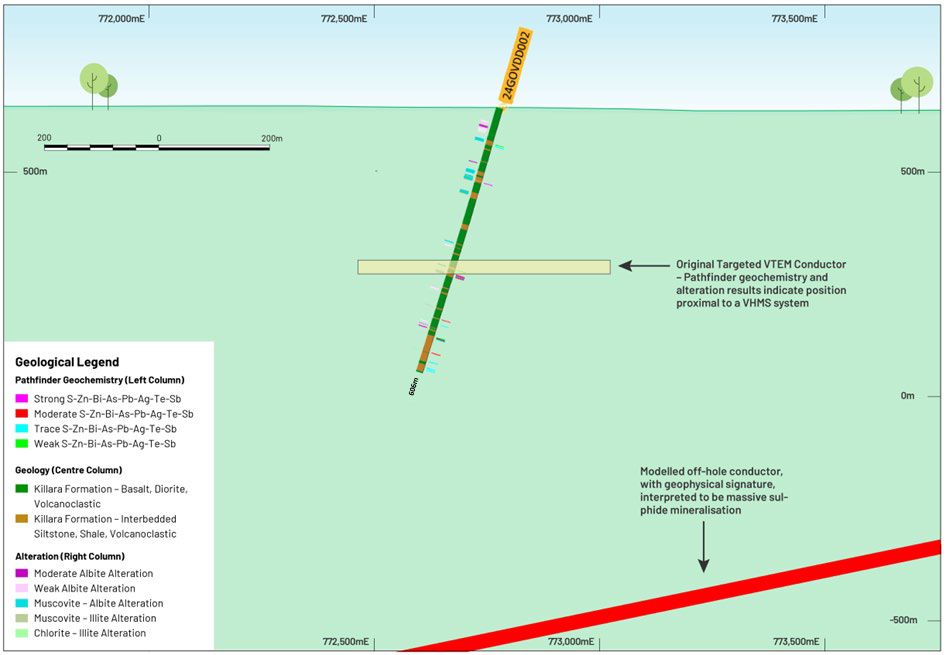 - As a result of this development, Great Western plans to commence drilling by either extending or wedging from drill-hole 24GOVDD001 and test the interpreted VHMS style conductor target below this hole immediately after access has been reestablished due to recent cyclonic activity in the region.