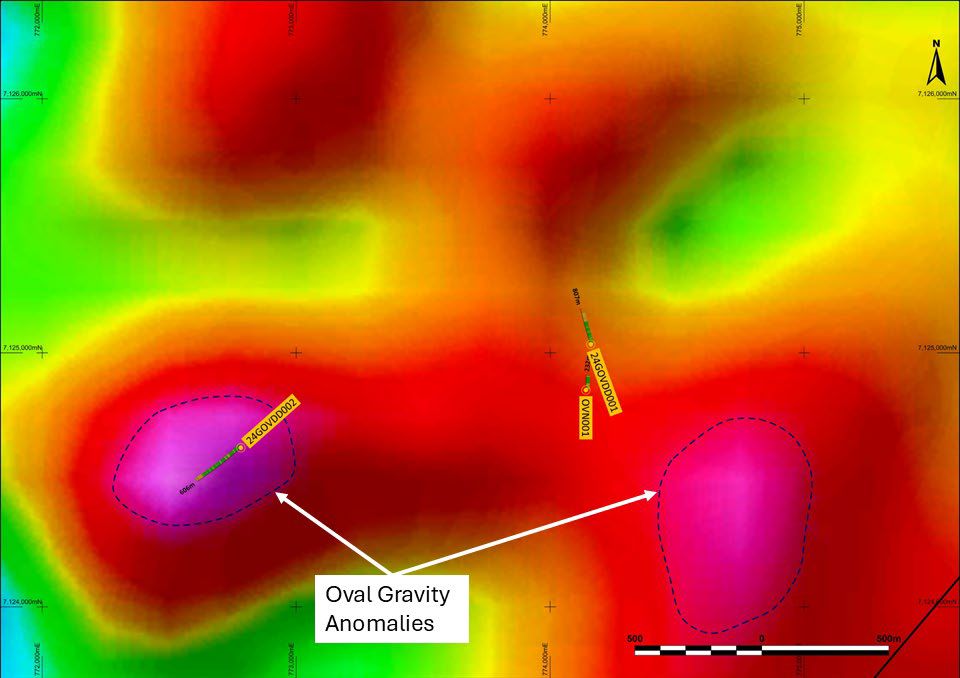 Drilling to test the conductor below 24GOVDD001 is anticipated immediately after access has been reestablished due to cyclonic activity in the region, by either extending or wedging from this drill-hole. The Company anticipates drilling of Oval South, Sumo Niobium, and the Juggernaut Copper-Gold Targets will commence as soon as possible after completion this second phase of drilling at Oval.