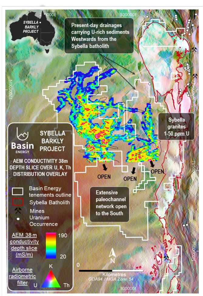 Using the Sybella rocks that likely formed the source for the Valhalla deposits, Basin will target the potential for uranium to have also been mobilised from the Sybella granites, through the extensive paleochannel network identified which appears to have suitable geological host characteristics.