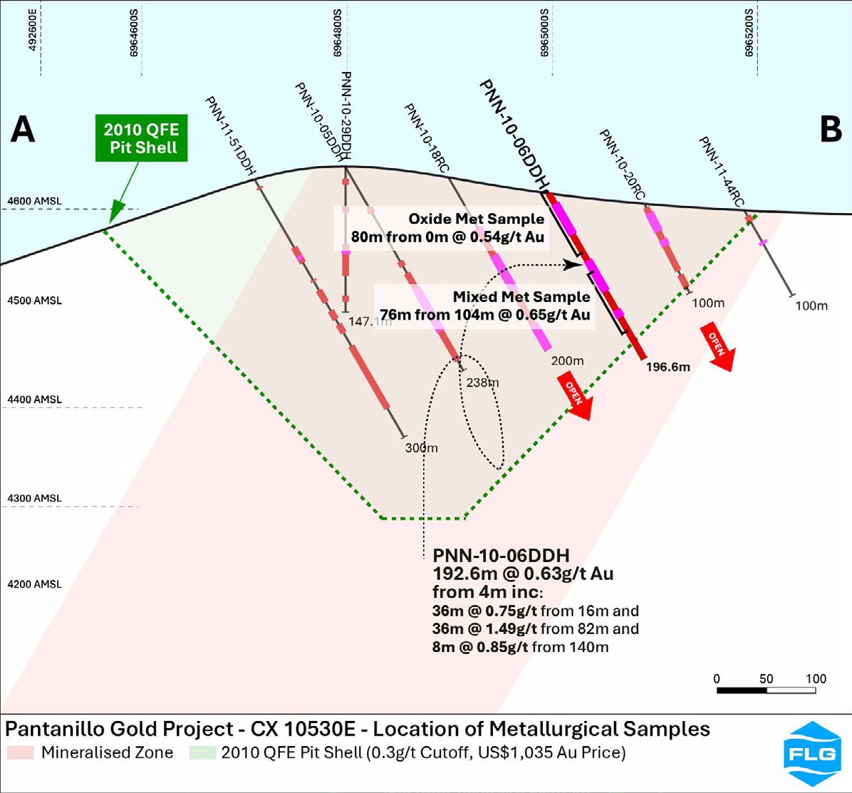 Flagship's strategy for the Pantanillo project is to define sufficient Mineral Resources that will support considerations for project development consisting of open pit mining and heap leach processing with an aim to produce 100,000oz of gold per year for at least 10 years.