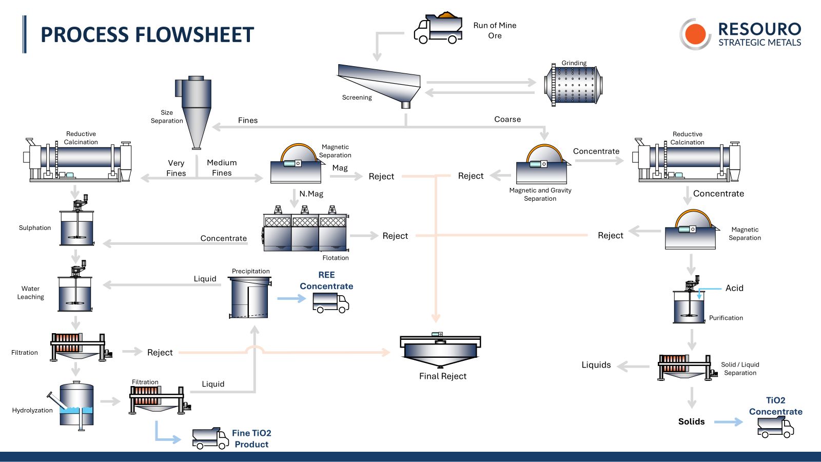 "This flowsheet was chosen because it uses a combination of conventional technologies and the majority of equipment can be sourced in Brazil," said Christopher Eager, Resouro's Chairman and CEO. "We are continuing to test alternative technologies to include in trade off studies-like the recently announced MOU with Rare Earth Technologies of Cincinnati, Ohio-for the upcoming preliminary feasibility study." (Refer ASX announcement of 13 November 2025 / TSX-V 12 November 2025).