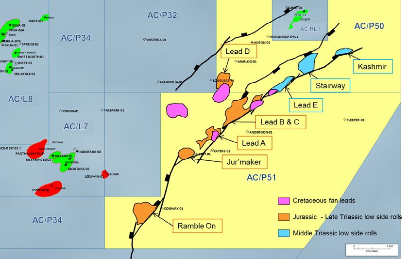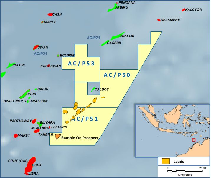 AC/P51 is located on the Western margin of the Vulcan sub-basin, where the Late Jurassic, oil prone source rock presence is demonstrated and related oil discoveries have been made nearby at the Montara and Talbot oil fields.