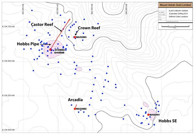 - Crown Reef prospect is located 100m northeast of the Hobbs Pipe on Mount Adrah