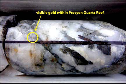 *The nuggetty nature of gold within these reef systems has proved problematic for sampling. For example, the sample of Procyon Reef from GHD009B (473.4 - 474.1m) that was sent for assay returned a value of 1.96 g/t Au. However the grade is potentially much higher as visible gold was observed in the half core that was retained in the core trays.