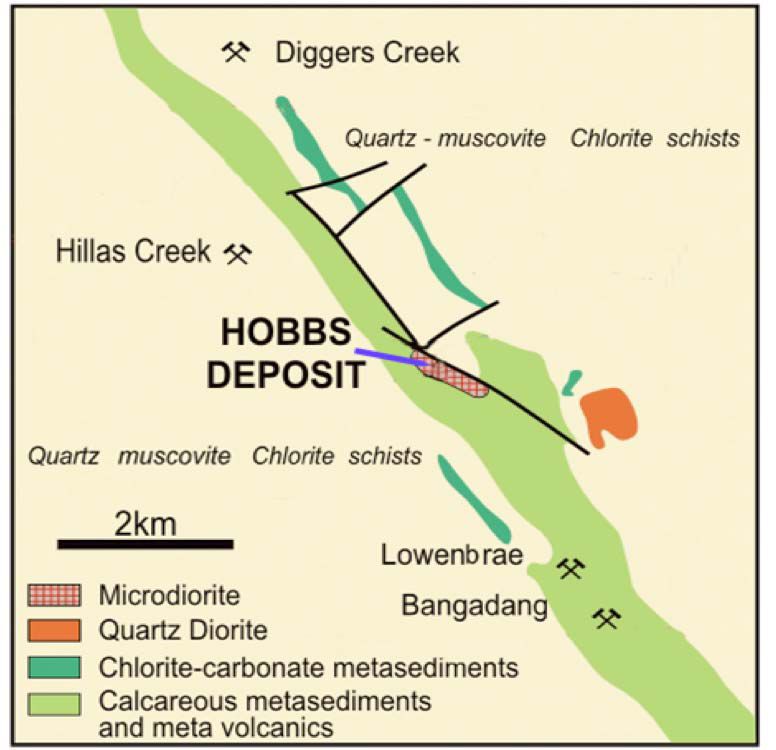A new target has been identified at Nacki Nacki based on anomalous gold and base metal mineralisation from surface sampling and geophysical interpretation. Early indications suggest a geological setting similar to that found at the Hobbs deposit.