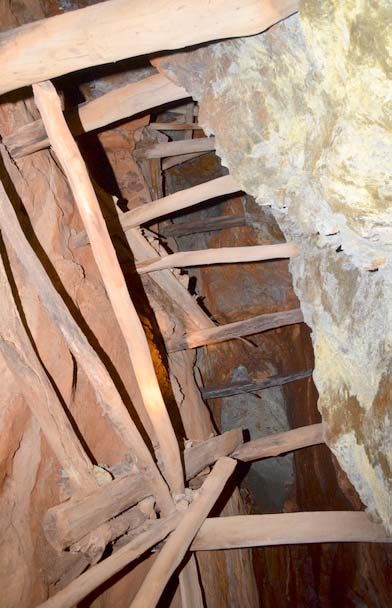 - Sheared breccia pipe hosted in altered schists