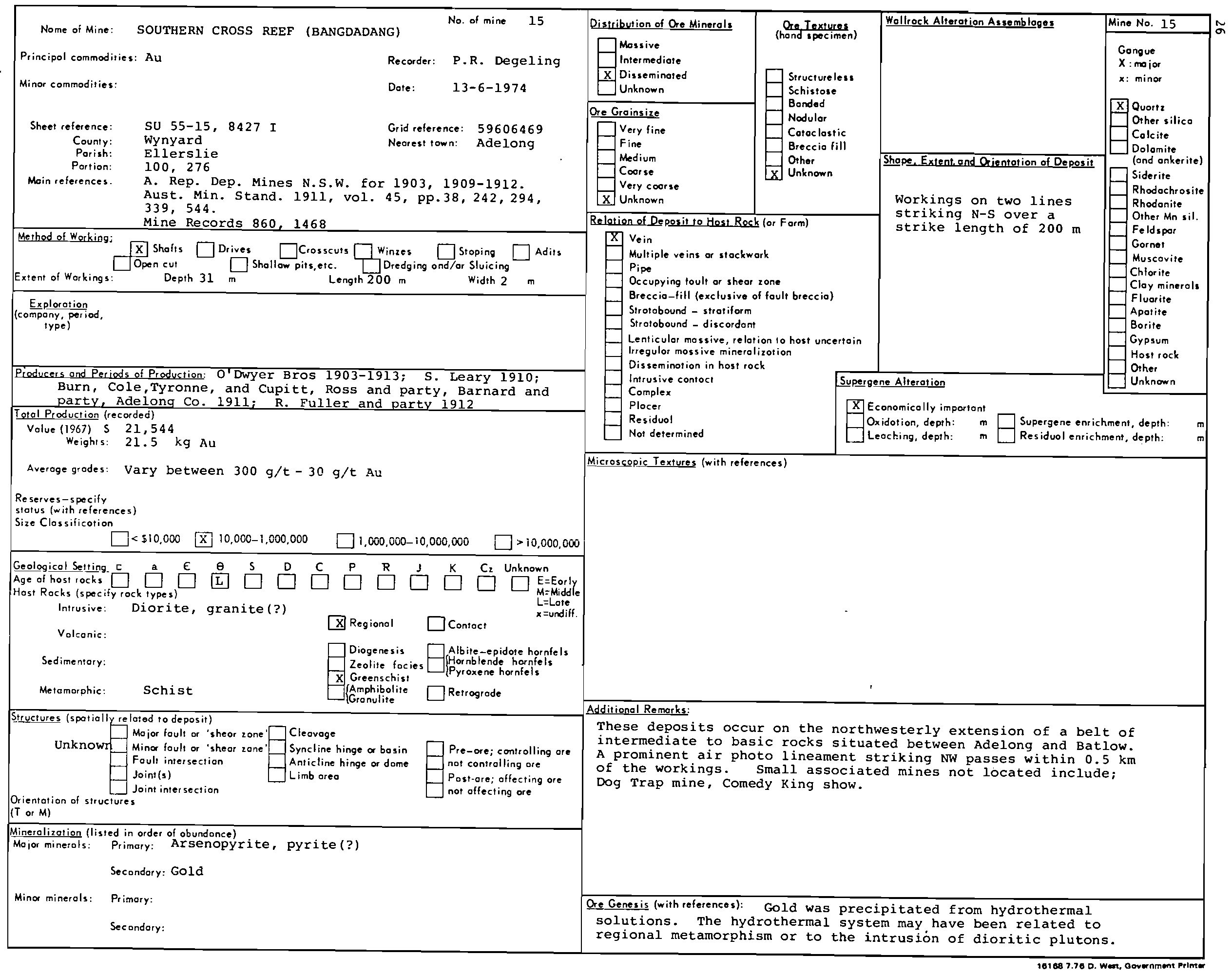 - A drilling program is proposed to test beneath the old workings for evidence of a high-grade quartz reef target