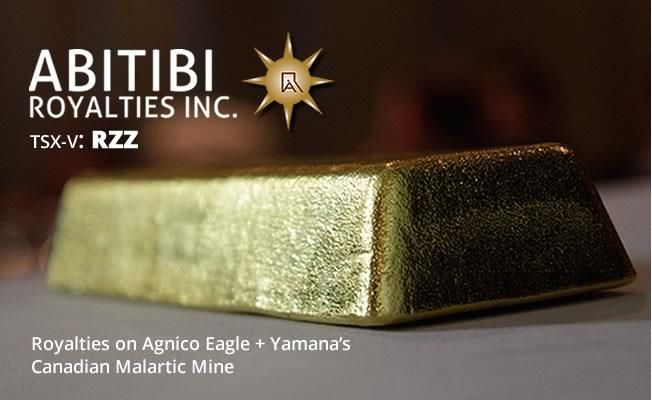 Abitibi Royalties Inc. (CVE:RZZ) holds a 3% NSR on the Odyssey North discovery, Jeffrey Zone and the eastern portion of the Barnat Extension, located inside the Malartic CHL property and a 2% NSR on portions of the Gouldie and Charlie zones, all at the Canadian Malartic mine near Val-d’Or, Québec. In addition, the Company is building a portfolio of royalties on early stage properties near producing mines. The Company owns common shares in Yamana Gold and Agnico Eagle Mines (market value), plus cash (as of September 30, 2016) of Cdn$41.8 million. The Company is debt free.