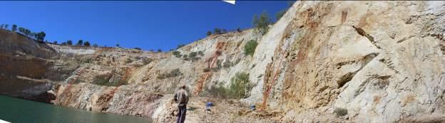 In April 2015, Zamia engaged geological consultant D. Menzies (Corbett, Menzies and Cunliffe) to conduct a field-based assessment of the project, which included pit mapping and logging of 1986-88 diamond core remaining at the project site. The assessment concluded that the deposit is characterised by structurally controlled quartz-sulphide style gold mineralisation related to a magmatic fluid source. Gold concentrations are focussed on a set of NW-striking fault-bounded quartz-pyrite-arsenopyrite 'reefs' exposed in the pit walls (Figure 1 & 2 in link below) and evident in drill core.