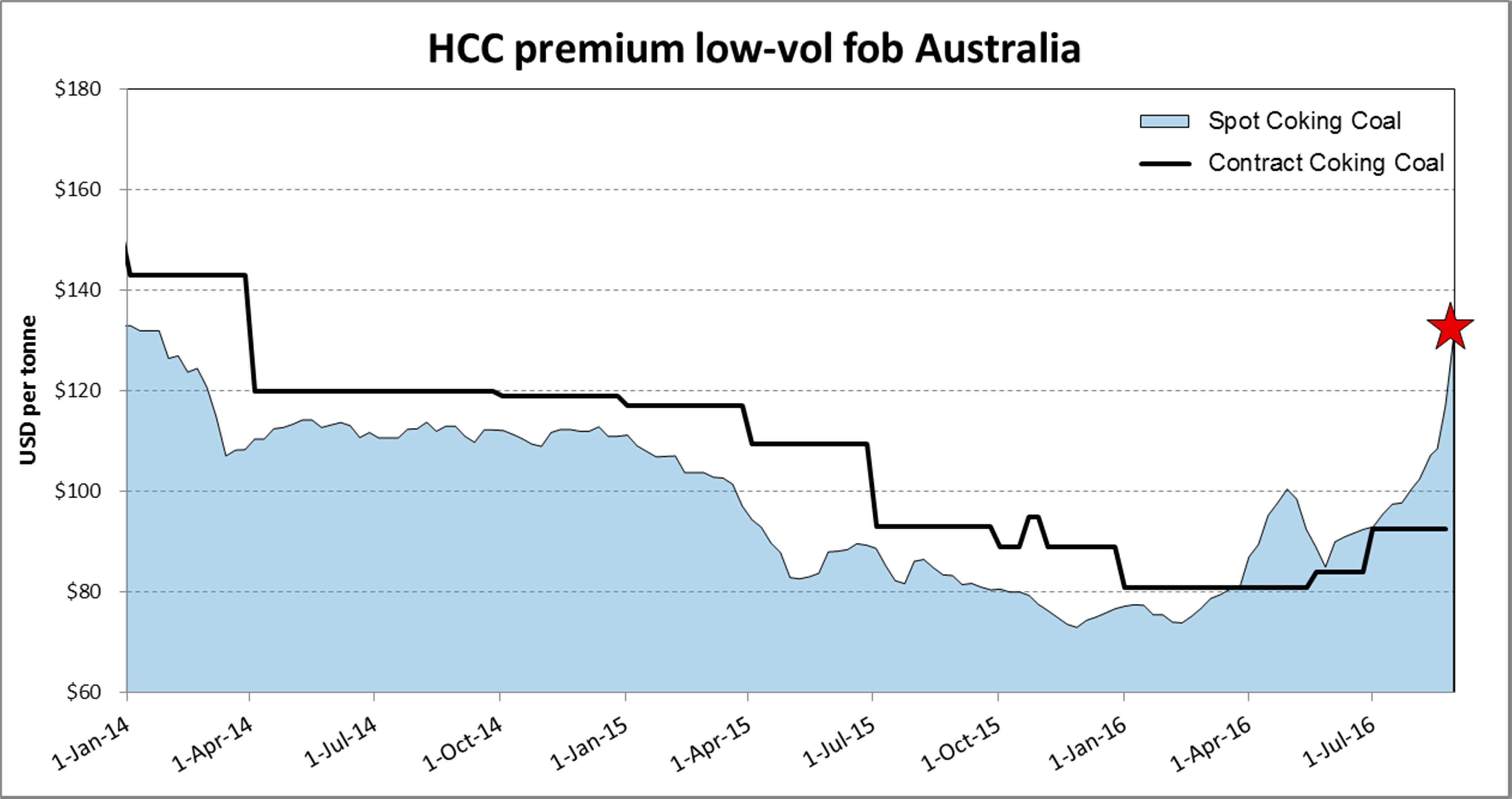 The Company is encouraged by the 6mth spot price for low-volatile premium hard coking coal. The recent recovery in coking coal prices supports the Company's decision to progress a project expenditure strategy that target high value activity during the cyclical downturn in the coking coal market.