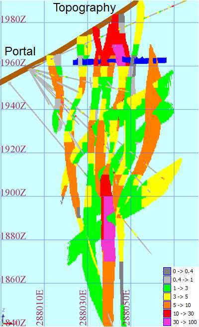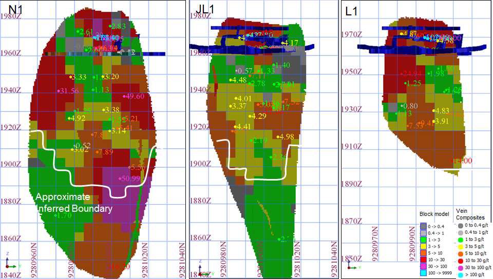 As part of the resource definition, mapping of the HGZ showed three distinct major high grade gold veins Figure 1. The three veins are closely linked and are estimated to carry 11,800 ounces of gold. The Company will now refine the mining method for maximum gold extraction from the higher cut-off grade of 7.5g/t Au implementing a revised, more focussed mining plan.