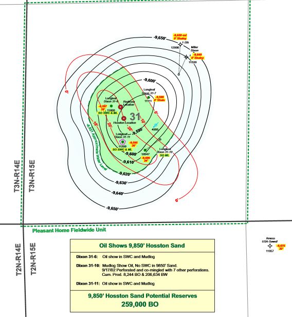 The Pleasant Home Field has produced in excess of 934,000 bbls of oil since 1999 from the 4 wells. The wells produce from multiple zones and presently have a number of zones that, based on show and log data, are interpreted to be bypassed oil pay and are yet to be completed for production.