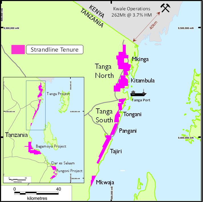 Strandline Resources is an Australian Stock Exchange listed company (ASX:STA) (OTCMKTS:STQNF) is a Tanzanian-focused mineral sands developer positioned within the world’s major zircon and titanium producing corridor in South East Africa. Strandline has a dominant mineral sands position with a series of 100% owned projects spread along 350km of the Tanzanian coastline.