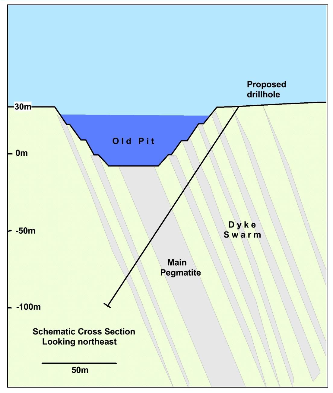 A drilling program has been designed and further drill sites are being assessed. To date 12 drill sites have been identified (see Figure 2 in the link below). Priority targets lie beneath the open cut where individual pegmatite dyke widths up to 25m are recorded in association with narrower ancillary dykes. Drilling is also designed to test targets immediately south of the pit where a dyke swarm approximately 150m is interpreted to extend along trend see Figure 3 in the link below).
