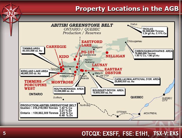 Mr. Chris Dupont: "I believe the current volatility, and ongoing investor uncertainty in the GOLD and base metals markets, has certainly been a major factor. There's no doubt many of our shareholders understand the 5-7year cyclical nature of the metals markets. The consensus opinion of a broad base of investors, however, is the belief we are on the verge of a major uptrend, especially GOLD, and Copper. As that happens, we believe Explor's stock price will significantly increase. Should we have an important find, that will have an upward impact as well. We have many major shareholders in Canada, the United States and Europe. Many of those have been with us for a number of years. Some have continued to add to their positions. We have a growing group of investors located in and around the Timmins Mining Camp, for example, where many of our properties are concentrated. They include miners, entrepreneurs, service providers, friends, and long-time business associates, who can see for themselves what progress we're making, given their proximity to our flagship projects. Given the Company's growing assets and properties of merit, in my opinion, the current stock price represents less than 10% of the true value of our assets."