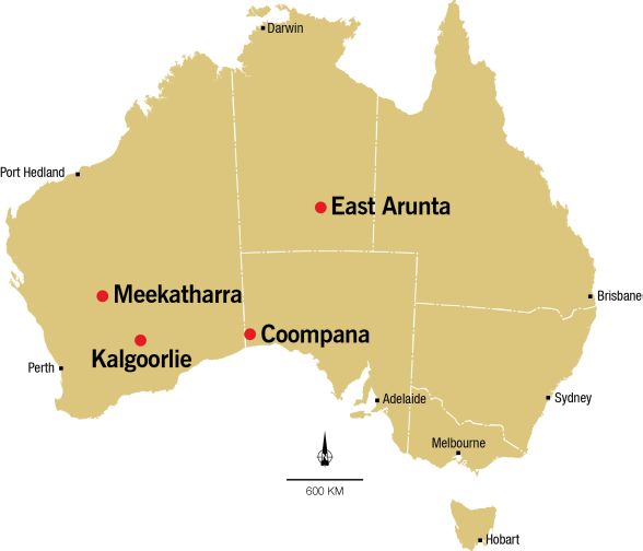 The Company and its exploration partners are actively exploring throughout the Kalgoorlie, West Kimberley and Murchison Districts of Western Australia for economic nickel, copper, zinc, and vanadium deposits.