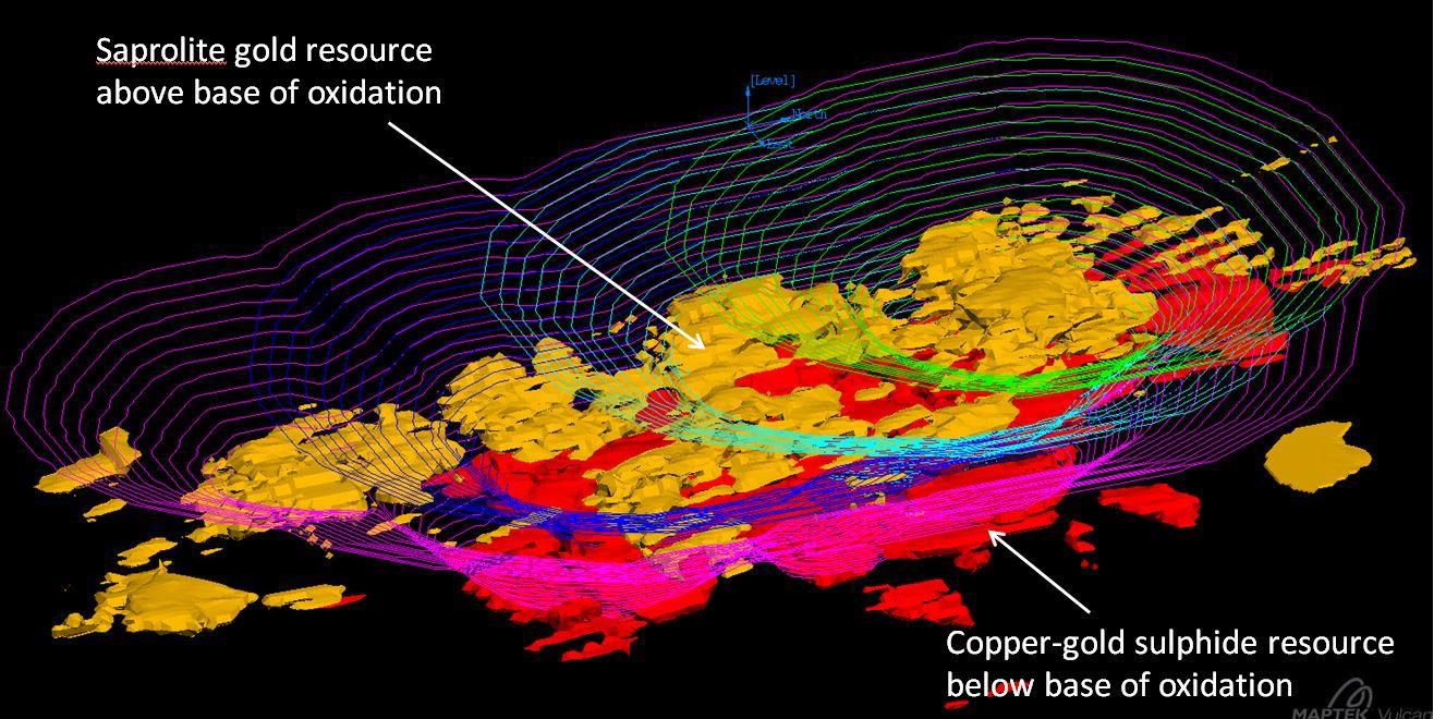 The initial mining target will be approximately 5 million tonnes of free digging secondary saprolite gold and copper-gold material above 150 metres depth. It is expected that all of this material will be able to be processed in the Portia gold plant, with the addition of a flotation circuit to recover the finer free gold and the copper sulphides.