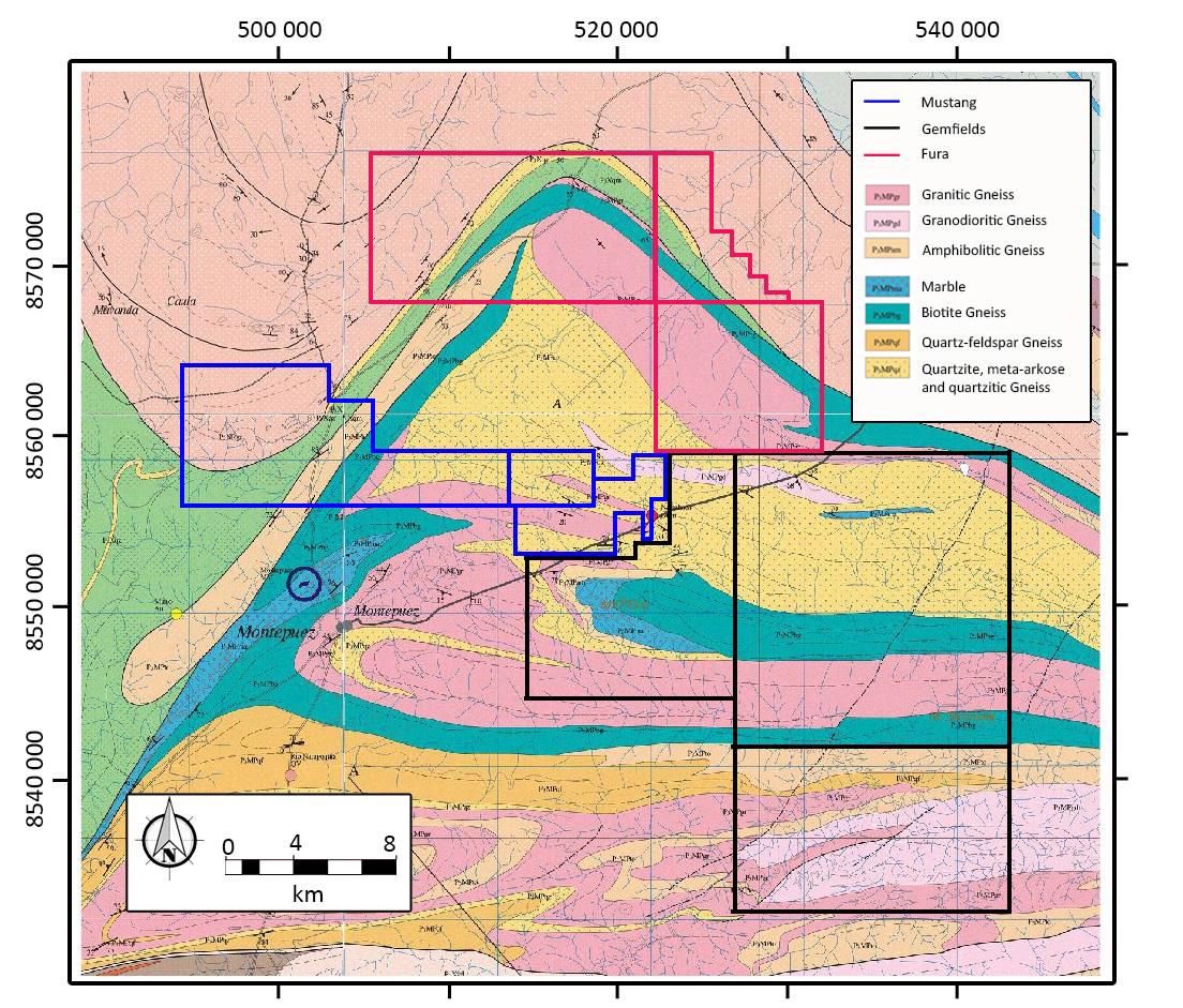 Upon closing of the transaction, Fura will acquire Mustang's ruby assets, including its rights to earn interests between 52.5% and 65% in its 3 concessions (2 mining concessions and 1 exploration licence) covering approximately 192 km2 (19,223 ha). Fura has also entered into a concurrent transaction with Regius Resources Group Ltd ("Regius") regarding an asset merger for all its ruby interests and associated assets. Regius holds rights to earn interests between 70% and 80% in 6 licences in the Montepuez region covering a total area of 518km2 (51,800ha). Fura is also acquiring Regius's 20% share in Montepuez Minerals Pty Ltd which holds rights to earn majority interests in 2 of the 3 Mustang ruby concessions (5030L and 8921C). On closing Fura will hold rights over a total area of 1,111km2.