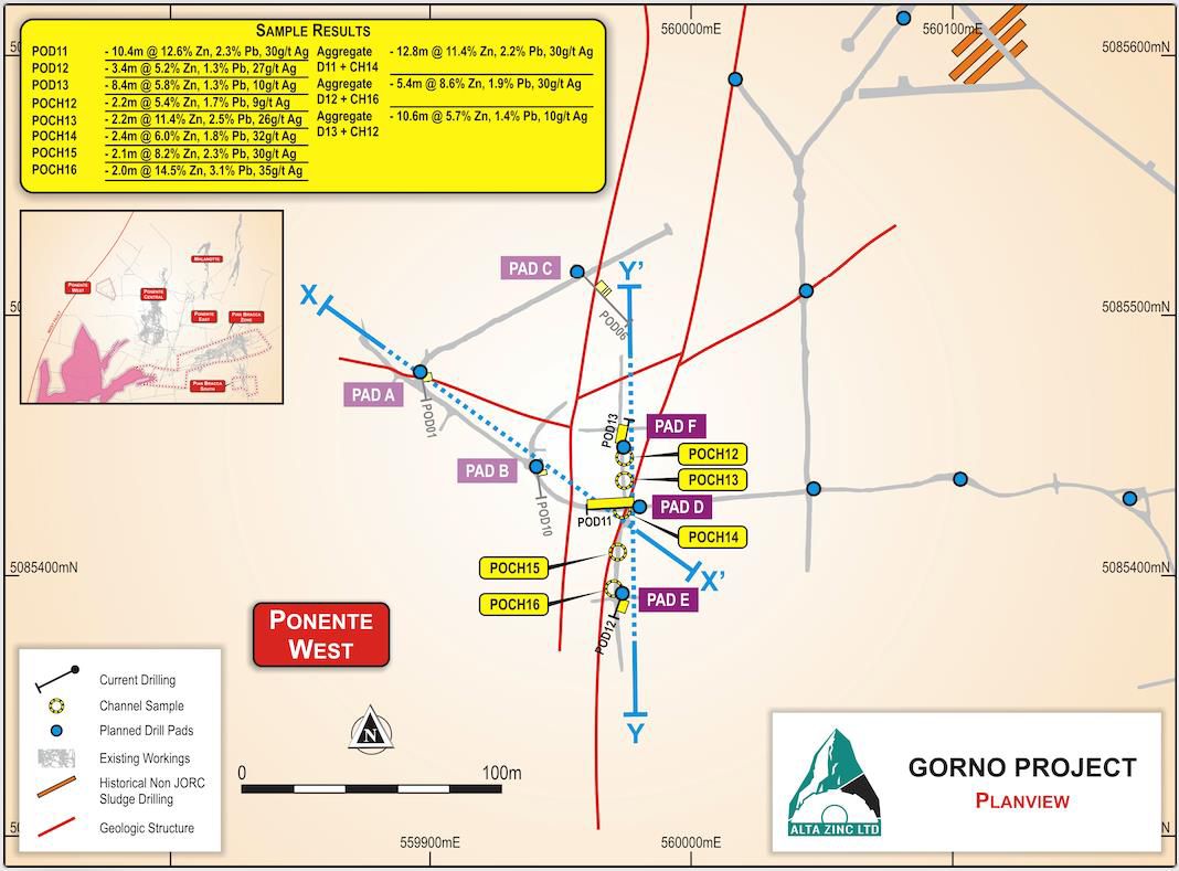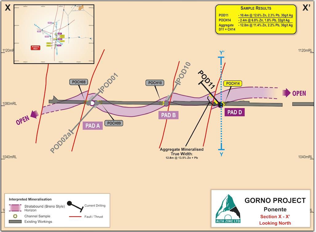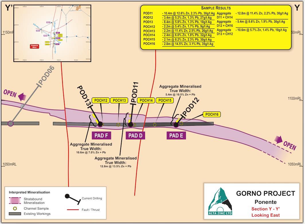 8EE:FRA) is pleased to announce the results of drill holes POD11 to POD13 and five channel samples (POCH12-16) which returned multiple intersections of zinc, lead and silver mineralisation from new drill locations in the Ponente area of the Gorno Mine.