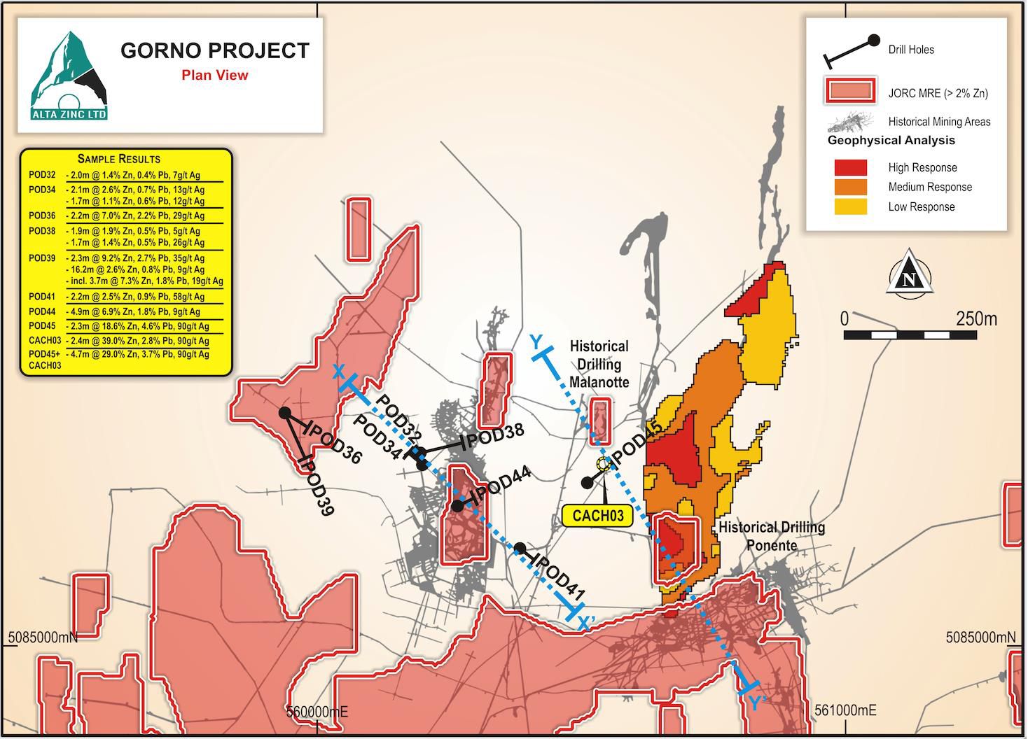 The drilling, 320m to the north of the Pian Bracca corridor, targeted an area identified by its similar structural geology and is adjacent to a geophysical anomaly outlined by an earlier surface Induced Polarisation (IP) program. Multiple intervals of the distinctive and high-grade Pian Bracca style mineralisation were intersected confirming that this style of mineralisation is far more widespread than previously seen. The results serve to endorse Alta's systematic exploration process which is now delivering new zones of mineralisation within the highly-prospective Gorno Project area.