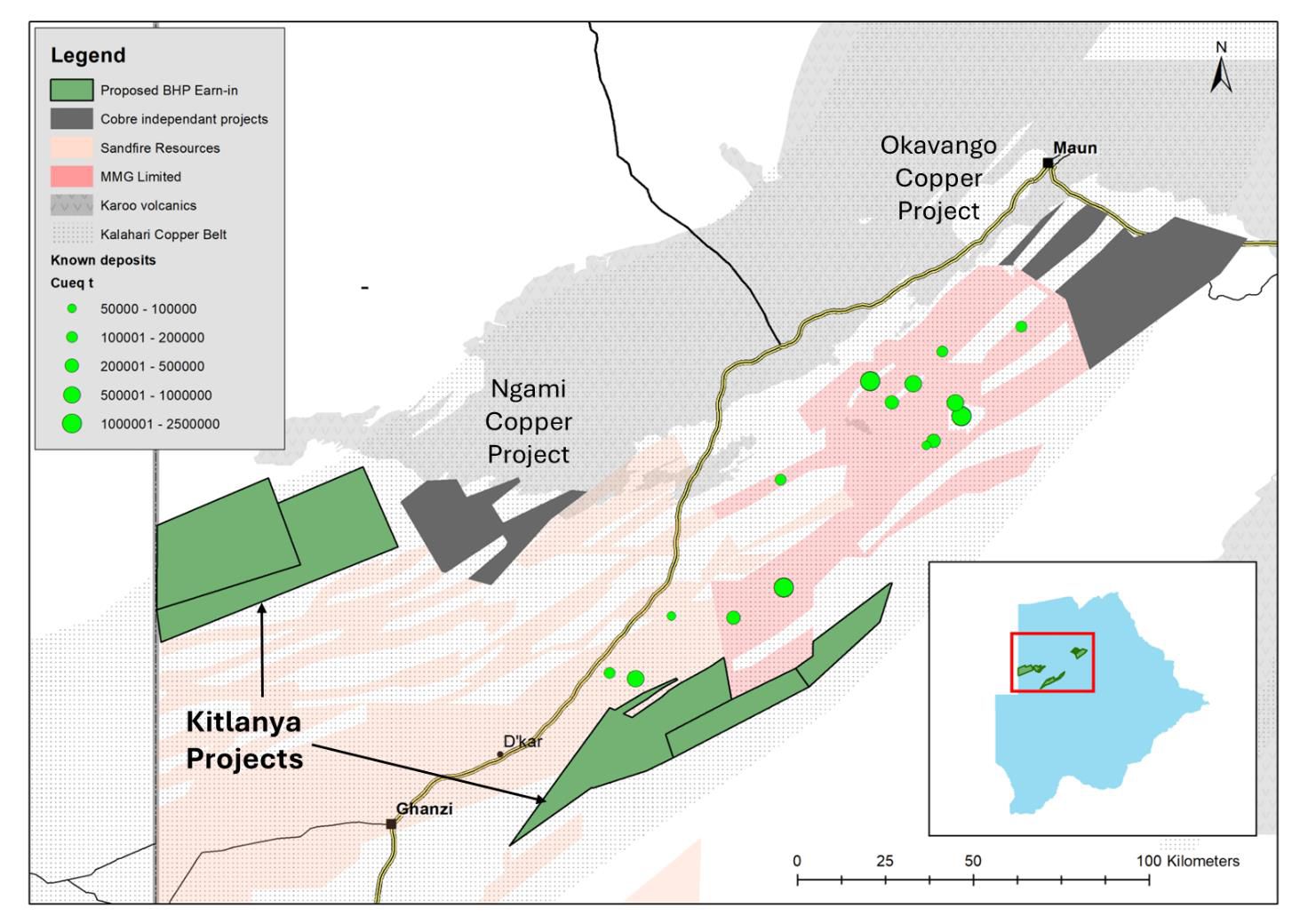 ASX:CBE) is pleased to announce that it has executed a letter of intent to negotiate exclusively with a wholly owned subsidiary of BHP Group Ltd (BHP) for a material earn-in joint venture agreement over Cobre's Kitlanya West and East Copper Projects (Kitlanya Projects), located on the northern and southern basin margins of the Kalahari Copper Belt in Botswana (Proposed Transaction). The Proposed Transaction follows on from Cobre's successful participation in the BHP Xplor program which also provided funding for the recently completed seismic survey on the Kitlanya West project (see ASX announcements of 23 January 2024 and 22 August 2024).