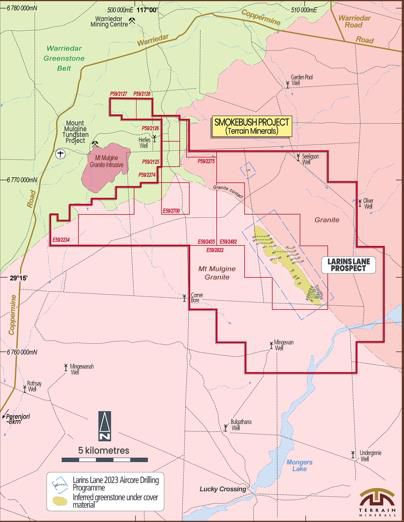 The Larins Lane Project is part of Terrain's Smokebush project area, which is located in the Mid-West region of Western Australia, approximately 40 kilometres west of Paynes Find, and 350 kilometres northeast of Perth.
