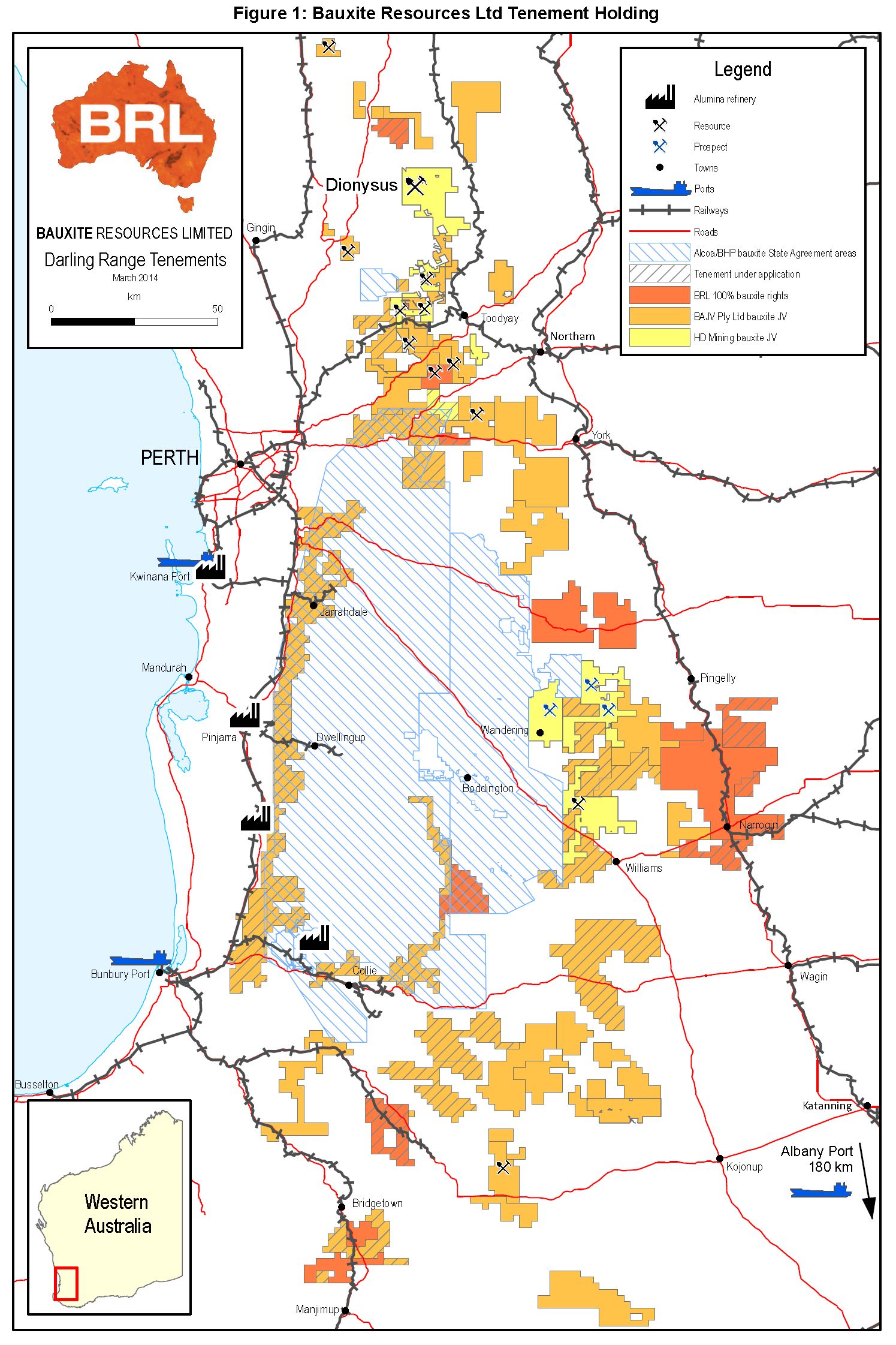 "This is an excellent result for BRL and our joint venture partner HD Mining. Dionysus is a completely new resource in the northern Darling Range, with excellent grades and low reactive silica. Whilst North of the Fortuna and Felicitas deposits it is still on the same rail infrastructure corridor. Our geologists are currently reviewing other properties in the region with a view to carry out further drilling next field season and build on the existing new resource. Dionysus is located on large private farmland and is in close proximity to existing rail infrastructure."