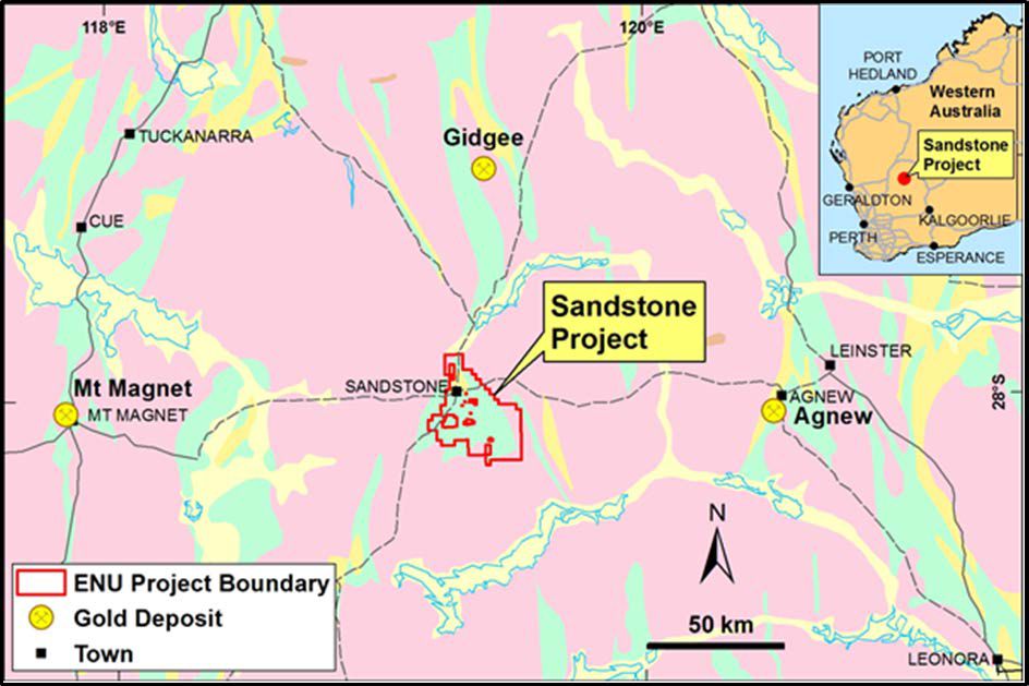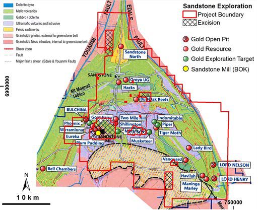 The Sandstone Gold Project covers approximately 75% of the Archaean Sandstone Greenstone Belt and comprises 5 Exploration Licence applications and 2 Prospecting Licence applications for a total landholding of ~723km2. Since the discovery of gold at the end of the 19th Century the Sandstone Greenstone Belt has produced over 1 million ounces of gold from numerous high grade underground and open pit mining operations. Of this, some 508,000 ounces was produced between 1999 and 2010 from the open-pit mining of shallow oxide ore by Troy Resources Ltd (