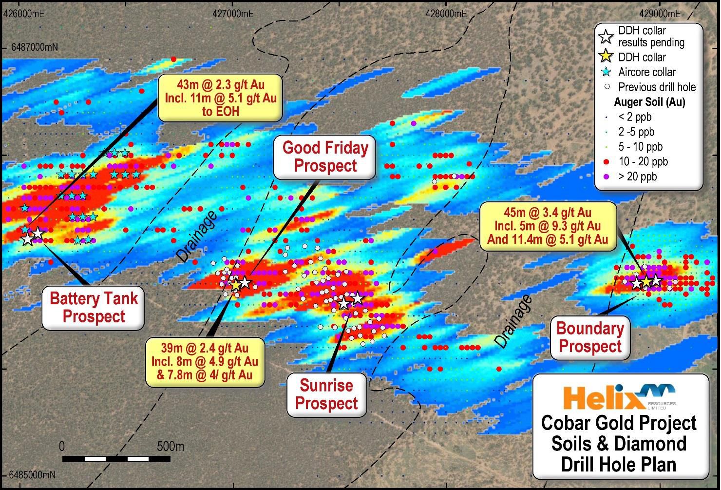 This observation and interpretation, in association with existing high grade gold mineralisation in similar structural positions to gold deposits within the Peak gold trend supports Helix's view that the Company's Cobar Gold Project may be host to a larger gold system than previously thought.