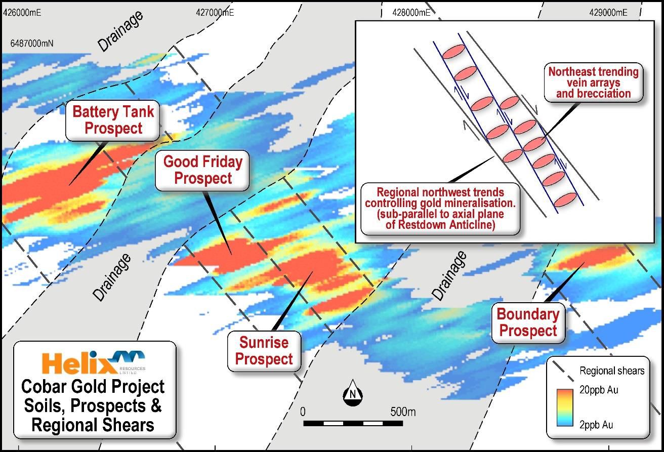 Multiple targets at these Prospects have now been identified by Helix and with further drill testing, this reinterpretation of the gold controls has the potential to increase the gold grades and volume of mineralisation across the known prospects significantly and increase potential deposit scale.