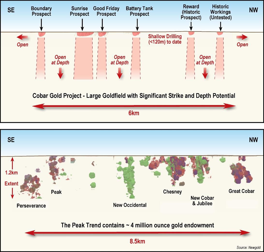 A schematic long section (refer Figure 3 in the link below) demonstrates the exploration potential of this relatively underexplored goldfield; with existing prospects currently only limited by the lack of exploration drilling. A comparison long section of the Peak Trend is also shown (refer Figure 3 in the link below).