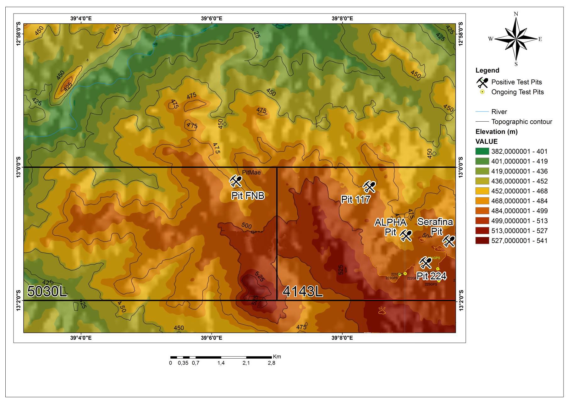 - Prospecting for additional ruby-bearing deposits (Pit 224 & Pit FNB) commenced through large trench excavation and the Alpha pit extension