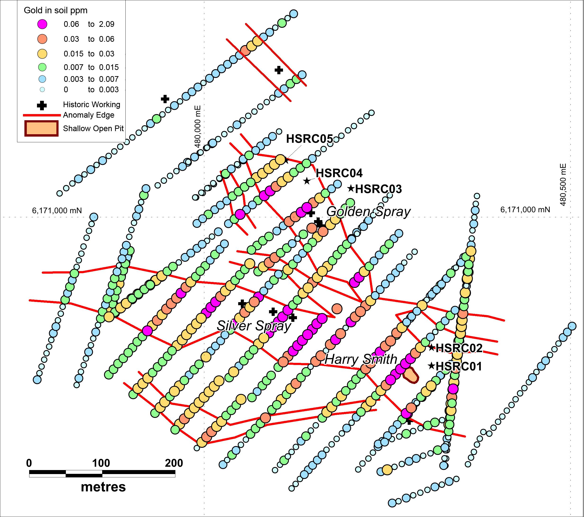 Planning is underway for follow-up work at the Harry Smith Gold Project where differential GPS surveys taken during the last program has allowed location of historic soil geochemical data. Around 1,100 samples were collected in 1994-95 and assayed from four prospects.