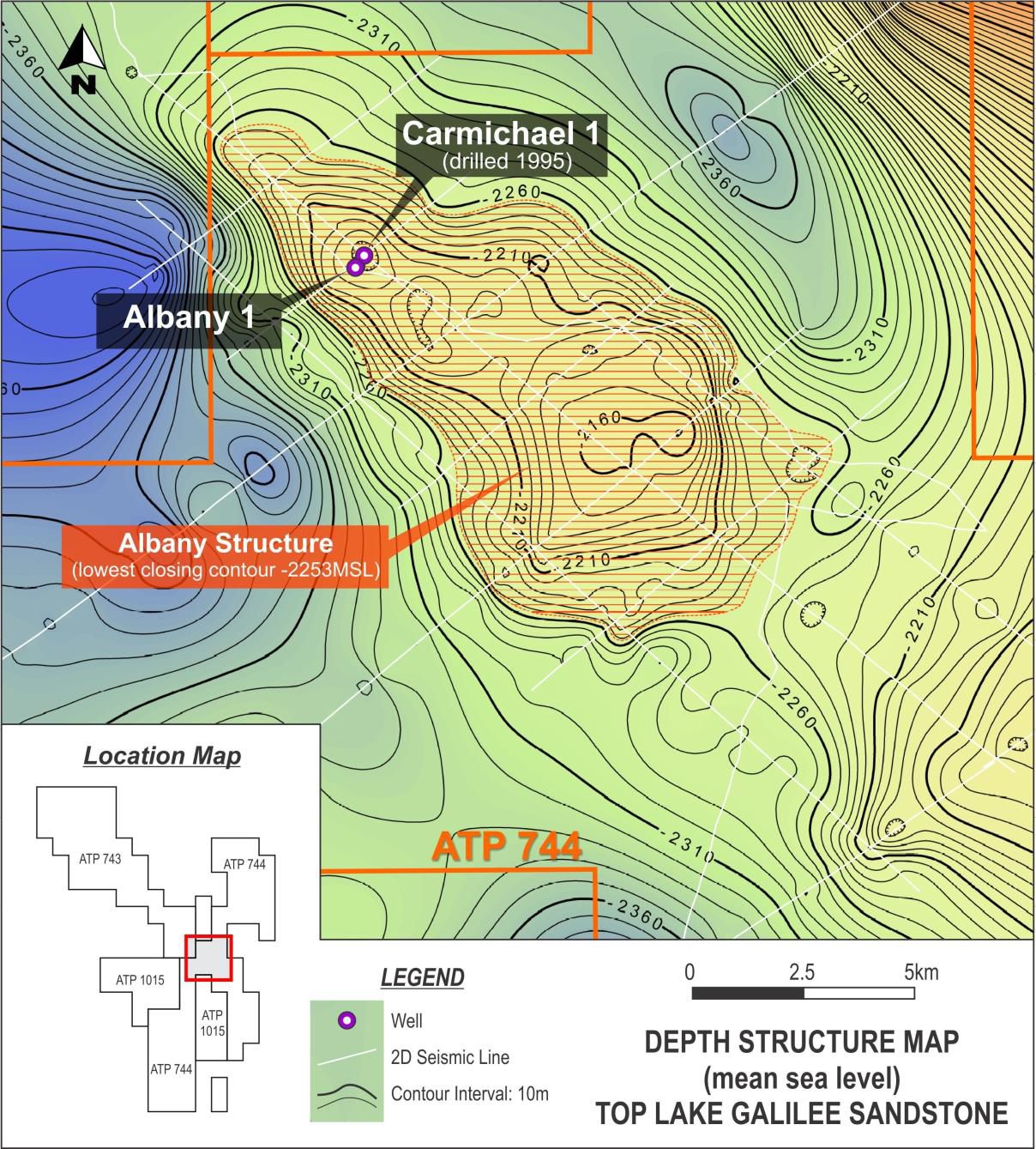 Figure 2 below (see link below) details the relative positions (and close proximity) of the Carmichael 1 (from 1995) and Albany 1 wells on the large structure.