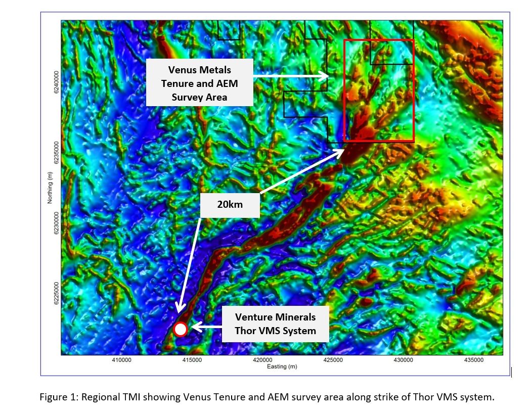 The HEM survey targeted volcanogenic massive sulphides (VMS) similar to the Kingsley VMS discovery (Wheatley prospect) by a JV between Teck Cominco and BHP Billiton in 2007 and the recently announced Thor VMS system discovered by Venture Minerals (googlechartASX:VMS) (ASX VMS release 8 August 2018).